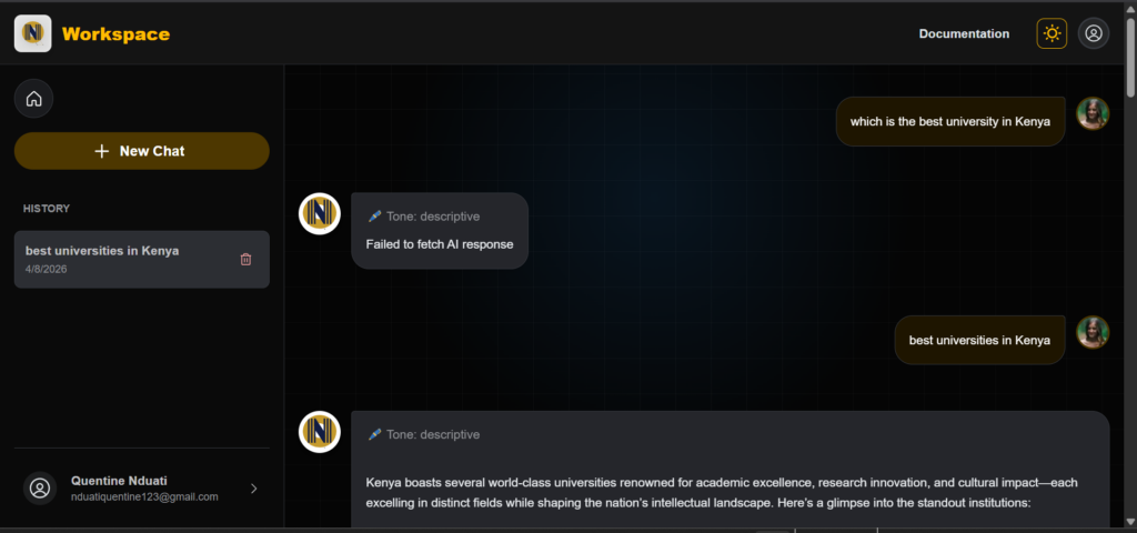 Validation: Seeing a user starting the journey from navigation, content generation, tone refinement and saving in their computers/phones confirmed that my design and engineering choices were aligned with real human needs.