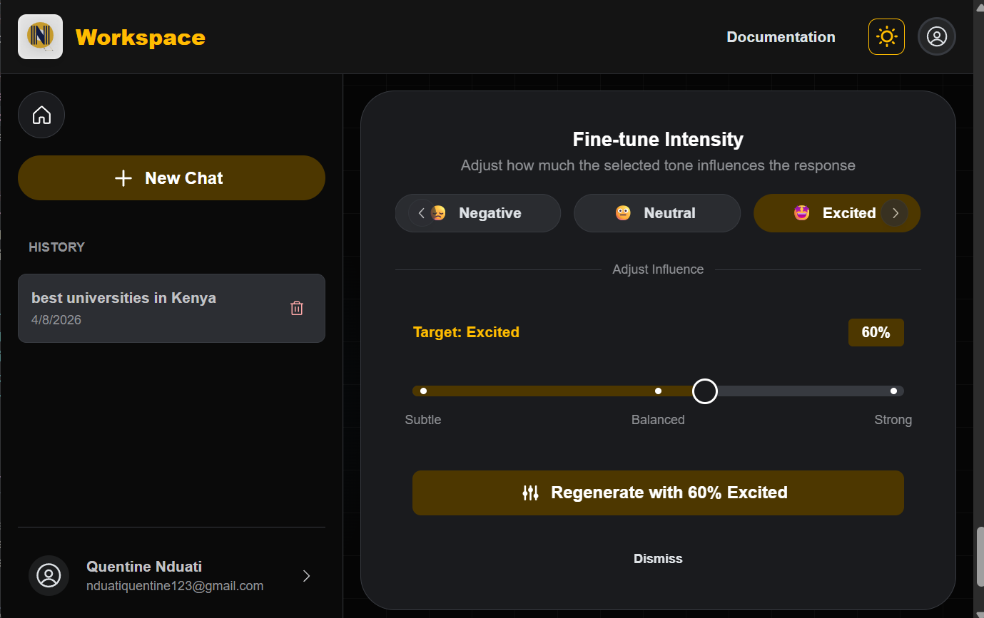 The Strategy: Developing a tonal blending interface that gives users control over emotional intensity and trait combinations, allowing for a truly personalized output.