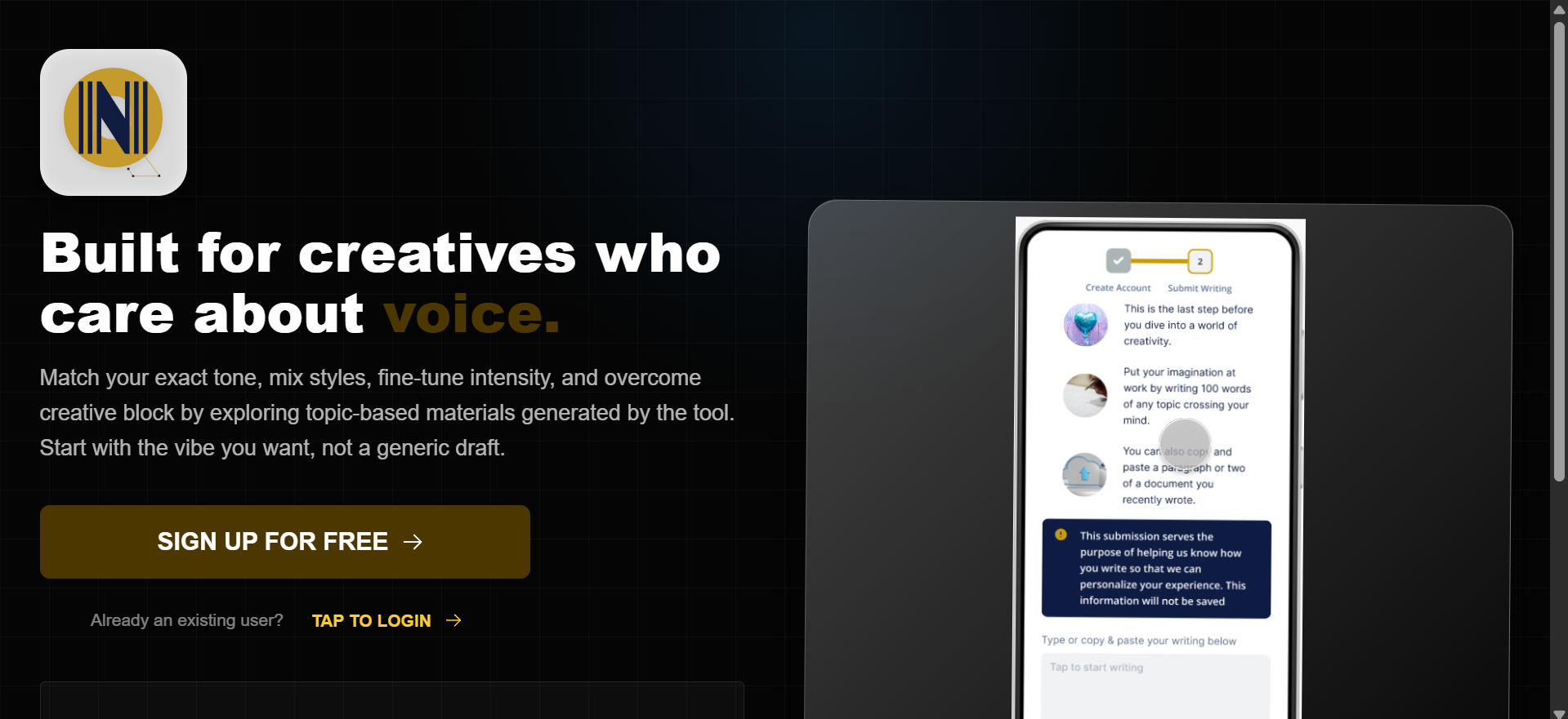 My platform is an adaptive AI writing system built for creators and educators who need to move fast without losing their unique voice. Unlike standard tools that produce generic, robotic text, this solution uses dynamic tone blending and multi-media inspiration to ensure every piece of content feels human, remains consistent, and stays accessible to everyone, on any device.